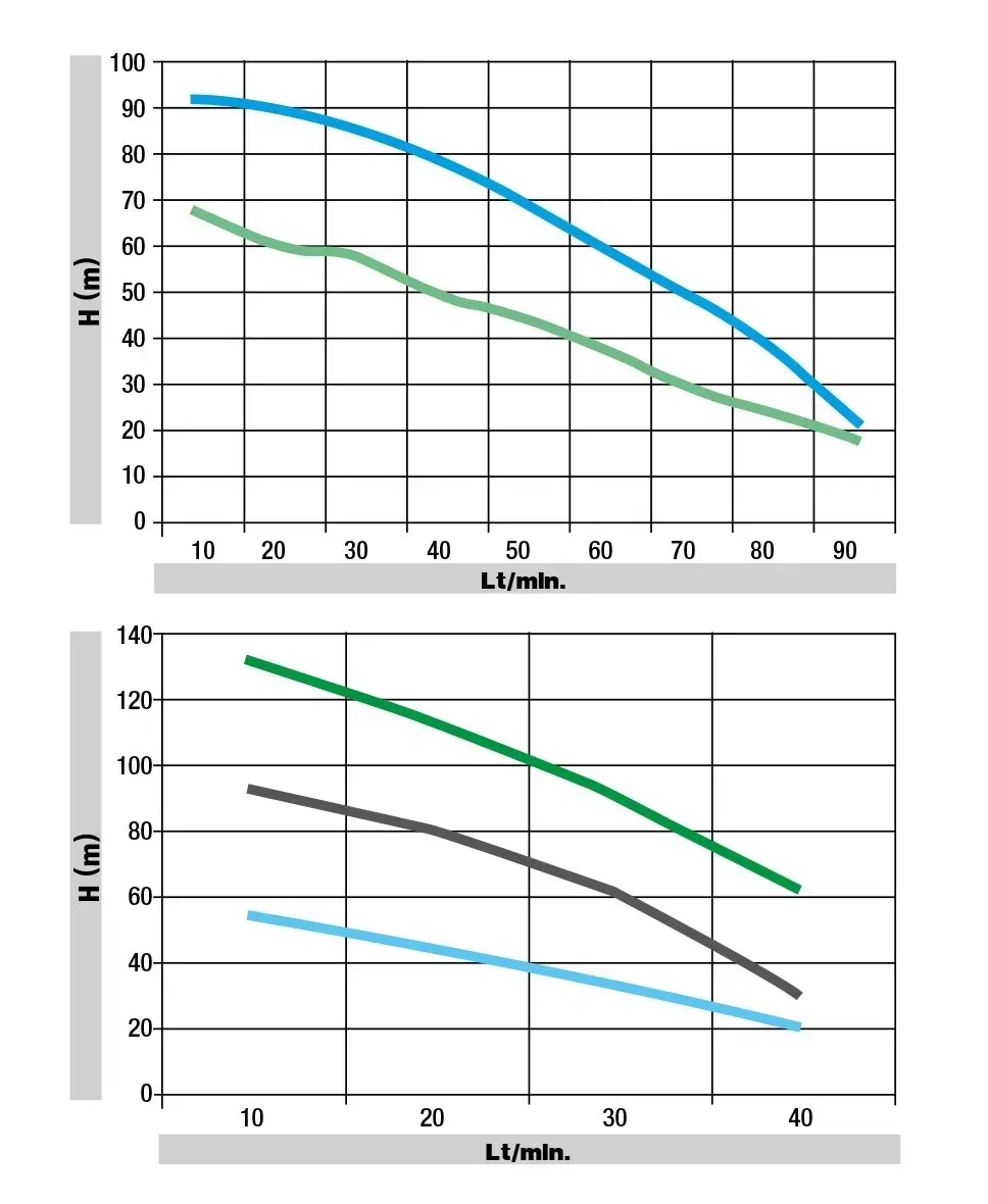 - Realizzate in acciao inossidabile , sottoposte a severi test elettrici ed idraulici. Max contenuto di sabbia 60gr/metrocubo. Max numero avviamenti ora 40.