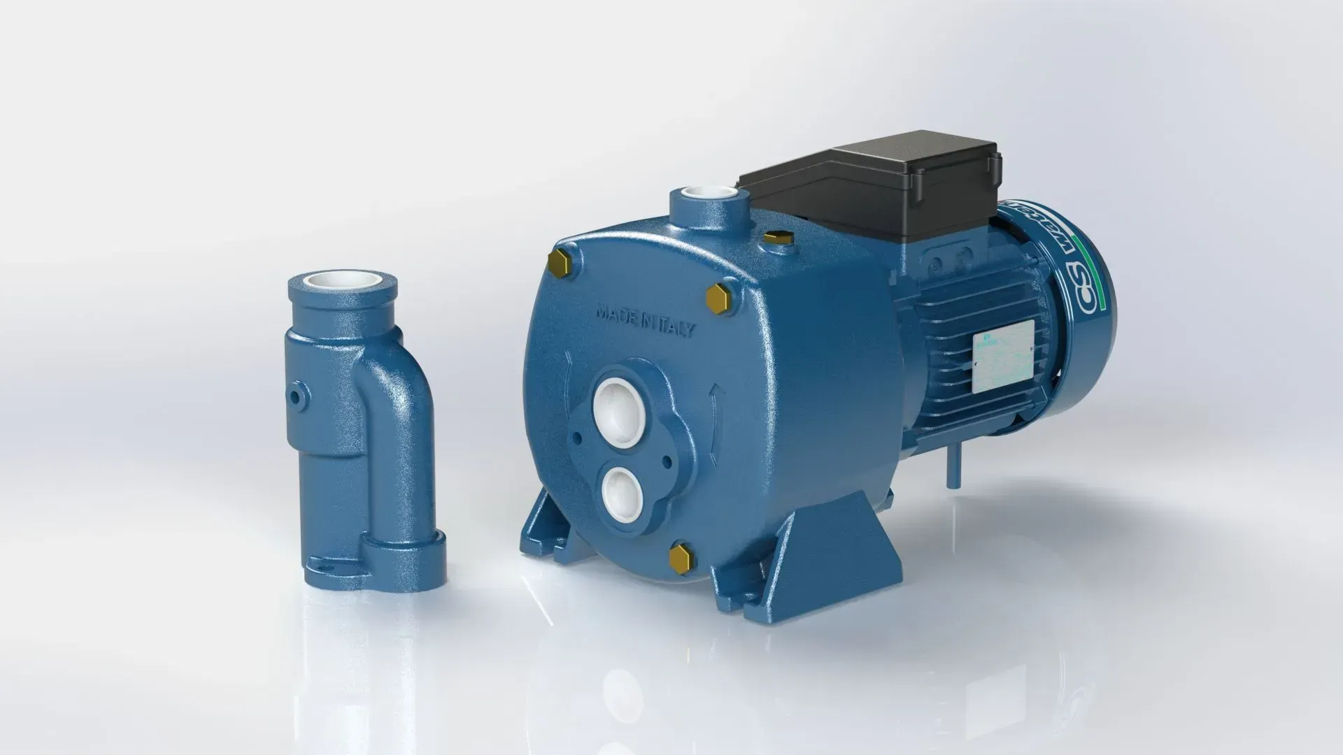 - Corpo pompa in ghisa con bocche di aspirazione e mandata filettata;