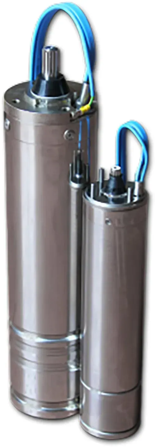 Serie di motori sommersi 6”- 8” - 10” riavvolgibili a bagno d’acqua, di tipo asincrono 2 poli, con rotore a gabbia di scoiattolo. Avvolgimento a filo bagnato in PVC, facilmente riavvolgibile. Motori robusti e sovradimensionati per poter sopportare carichi gravosi e durare nel tempo.
